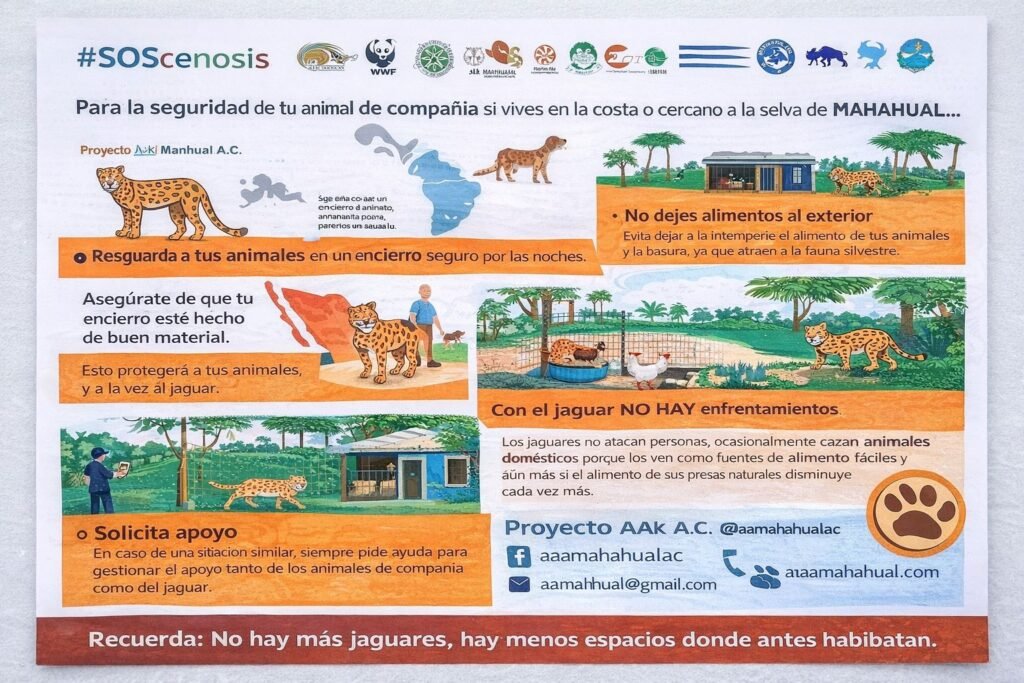 MAHAHUAL, Q. ROO, a 11 de febrero de 2026. — La organización Proyecto AAk Mahahual A.C. informó que la noche del 7 de febrero dos perros fueron lastimados por un jaguar en la zona costera de Mahahual.