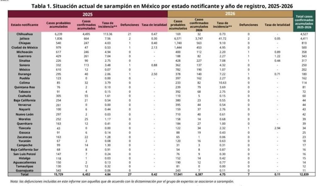Tras la detección de los casos, las autoridades de salud activaron los protocolos de seguimiento epidemiológico y reforzaron las acciones preventivas en coordinación con las instancias federales.