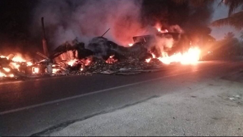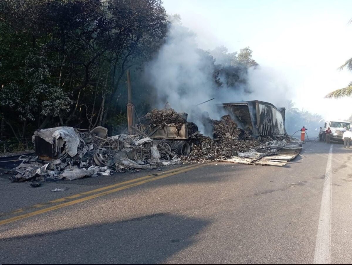 El siniestro ocurrió cerca de la Caseta Fitosanitaria de Nuevo Campechito, donde por causas que aún se investigan dos unidades de carga pesada colisionaron de frente. Debido a la magnitud del impacto, ambos vehículos se incendiaron casi de inmediato, generando intensas llamas y densas columnas de humo visibles a varios kilómetros de distancia.