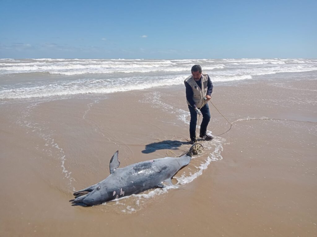 MATAMOROS, Tamps, a 13 de marzo de 2026.— Un delfín nariz de botella fue localizado muerto en Playa Bagdad, en la costa de Matamoros, Tamaulipas, presuntamente utilizado como carnada para la pesca de tiburón, una práctica ilegal que ambientalistas denuncian desde hace años en la región.