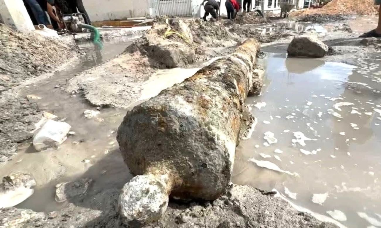 CIUDAD DEL CARMEN, Camp., a 12 de enero del 2026. – Un cañón colonial del siglo XVII fue encontrado en la colonia El Guanal en Ciudad del Carmen, mientras se realizaban obras de pavimentación.