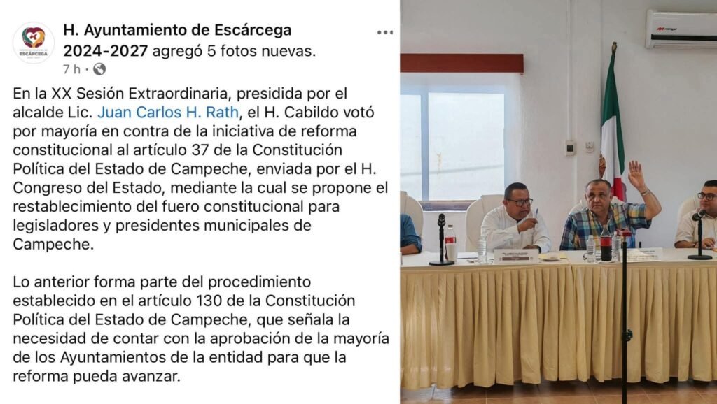 Con esta decisión, Escárcega se alinea a otros municipios de Campeche que han expresado su rechazo a la figura del fuero, en medio del debate estatal sobre la posible modificación constitucional.