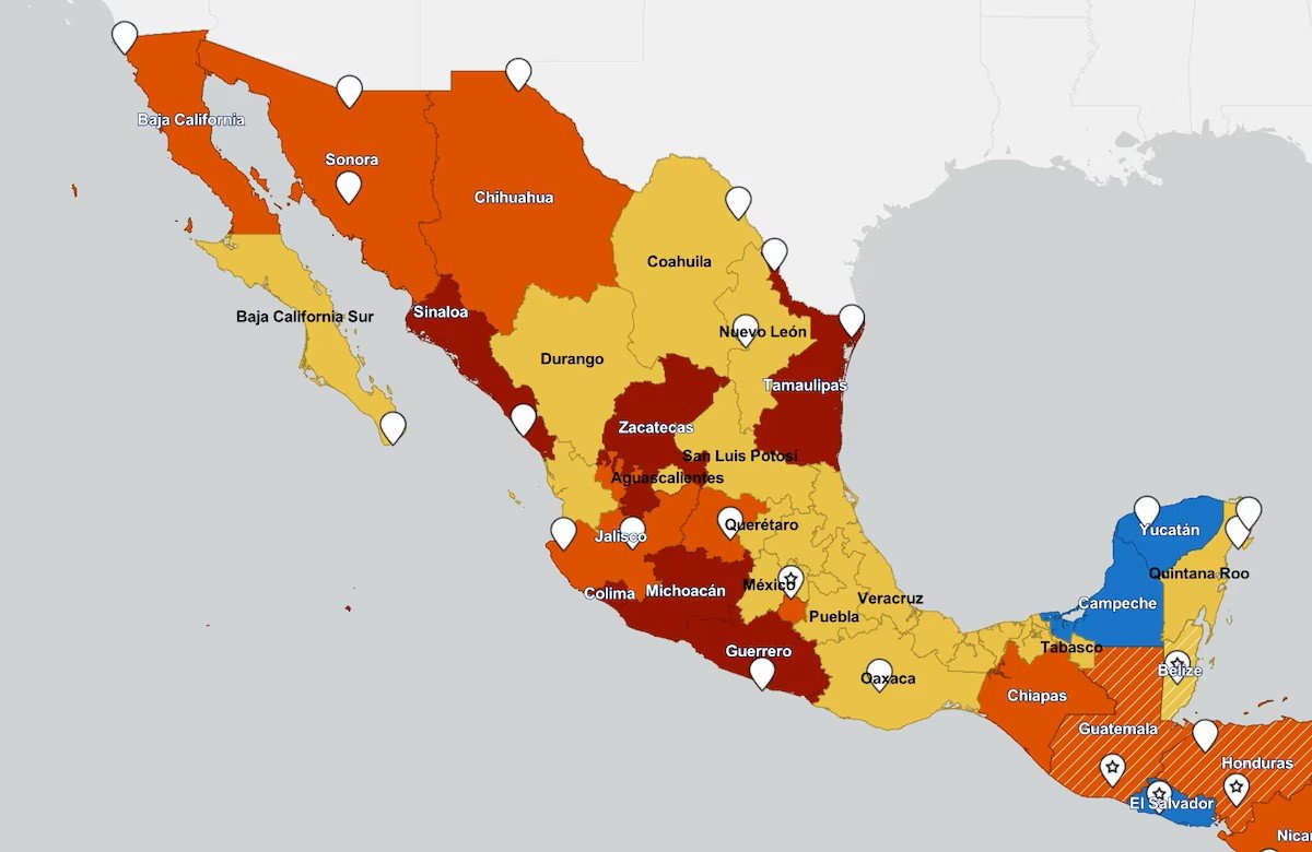 Las alertas responden a un contexto marcado por violencia criminal, secuestros, robos y disputas entre grupos delictivos en distintas regiones del país. El gobierno de Estados Unidos ha advertido que, en ciertas zonas, su capacidad de asistencia consular es limitada, lo que refuerza la recomendación de evitar viajes en áreas clasificadas como de alto riesgo.