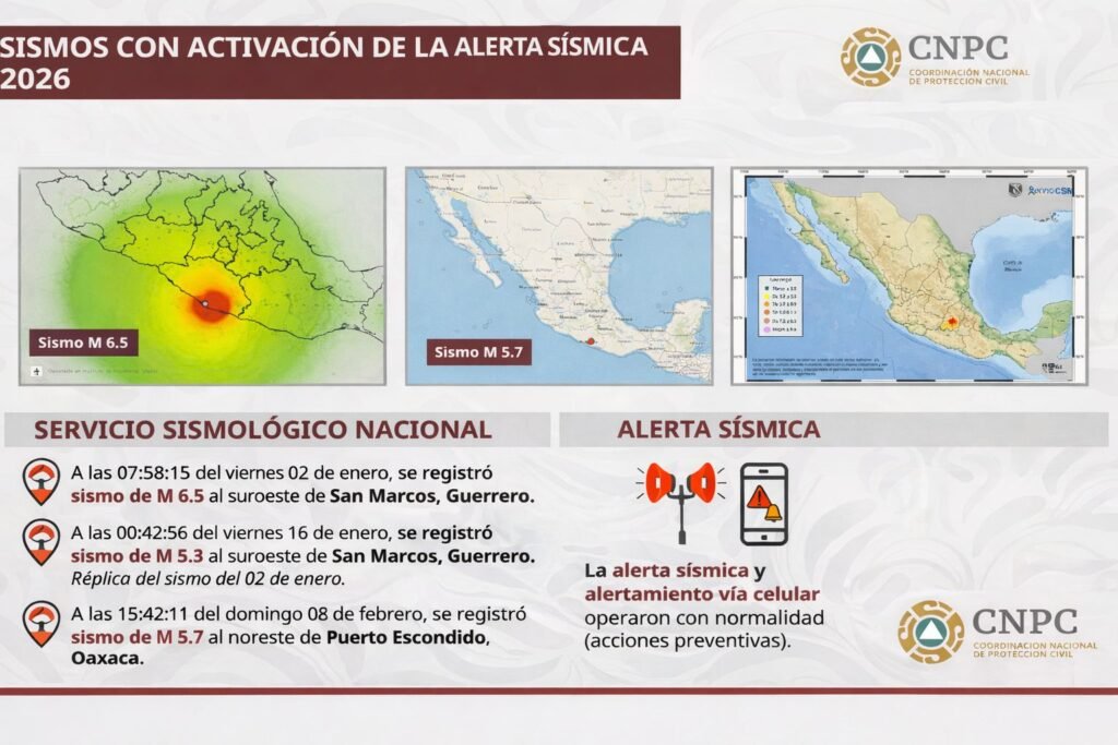 El anuncio se da después de que en lo que va de 2026 se registraran tres sismos relevantes en Guerrero y Oaxaca, con magnitudes de 6.5, 5.3 y 5.7, en los que el sistema de alerta operó con normalidad.