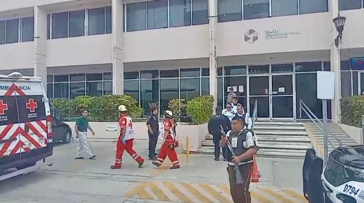 SAN FRANCISCO DE CAMPECHE, Camp., 17 de marzo de 2026.— Momentos de tensión se registraron en pleno Circuito Baluartes, luego de que un fragmento del techo del edificio del Servicio de Administración Fiscal del Estado de Campeche (SEAFI) se desprendiera y cayera sobre un transeúnte, causándole una lesión en la cabeza.