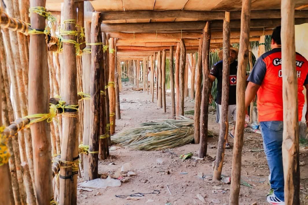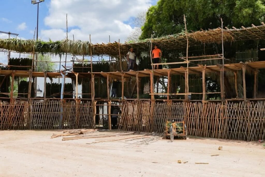 NUNKINÍ, CALKINÍ, Camp., a 9 de abril del 2026.–  Entre maderas, huano y la memoria viva de sus habitantes, el tablado tradicional de Nunkiní se erige cada año como el corazón de la fiesta patronal, consolidándose no solo como una estructura efímera, sino como un poderoso símbolo de identidad cultural y atractivo turístico en esta comunidad del municipio de Calkiní.
