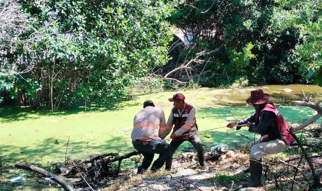 CIUDAD DEL CARMEN, Camp., 16 de abril de 2026.- Un cocodrilo fue encontrado sin vida en la zona de manglar de la colonia Santa Rita II, luego de quedar atrapado entre desechos sólidos durante labores de limpieza realizadas por personal de la Zona Federal Marítimo Terrestre (ZOFEMAT).