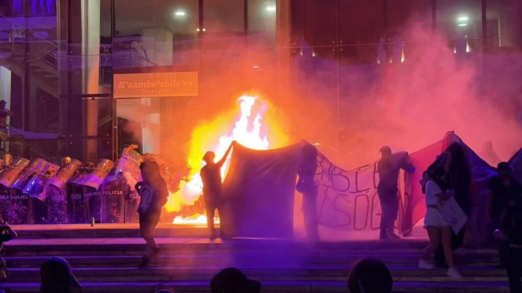 Cabe recordar que autoridades reportaron la detención de 14 personas tras los hechos violentos registrados al finalizar la marcha; de ellas, cinco fueron trasladadas al penal de San Francisco Kobén, mientras continúan las investigaciones por las agresiones registradas durante la movilización.